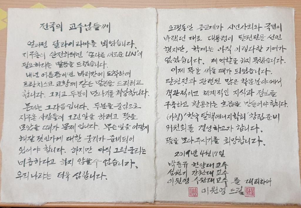 탈원전은 에너지문제이기 이전에 인류의 보편적인 생활전반에 관련된 문제여서 모든 교수들이 참여해야 할 사안이라는 생각이 들기 때문입니다.