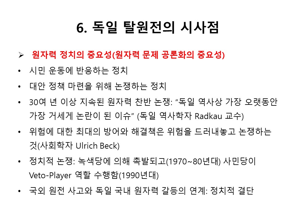 [발제문]독일 탈원전의 경위와 현황(김수진 고려사이버대외래교수) By liferoad.org on 7월 19, 2019 • ( 0 ) 독일 탈원전 이야기_김수진Download 이 글 공유하기: 클릭하여 X에서 공유 (새 창에서 열림) X 페이스북에 공유하려면 클릭하세요. (새 창에서 열림) Facebook 좋아하기 가져오는 중...‹ [발제문]독일 에너지전환의 생태적 효과(이태구 세명대교수)[학술회의 보고] 제2차 학술회의 ‘독일 탈원전 연구의 아젠다’ 개요 및 사진 ›카테고리:08월호-독일 탈원전 연구의 아젠다