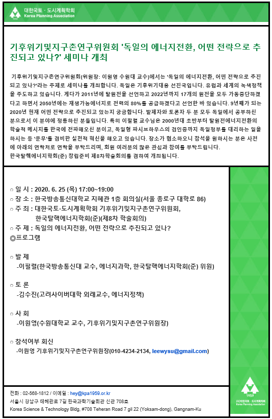-공동주최: 대한국토도시계획학회 기후위기및지구촌연구위원회, 한국탈핵에너지학회(준)