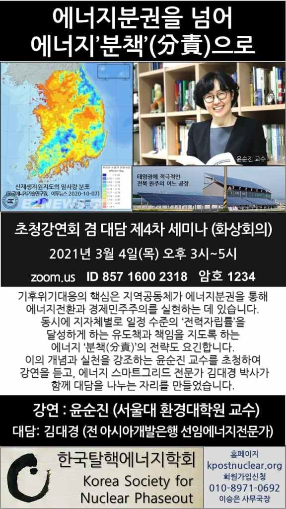 [제4차 세미나] 에너지분권을 넘어 에너지’분책'(分責)으로 By liferoad.org on 1월 29, 2021 • ( 0 ) 이 글 공유하기: 클릭하여 X에서 공유 (새 창에서 열림) X 페이스북에 공유하려면 클릭하세요. (새 창에서 열림) Facebook 좋아하기 가져오는 중...‹ [번역기사] 핵 에너지에 대한 중국의 애정은 왜 식어가고 있는가? (Der Spiegel)[기사] 텍사스 ‘한파 정전’에 불붙은 ‘그린 뉴딜’ 공방(경향신문) ›카테고리:02월호-에너지전환, 2021년