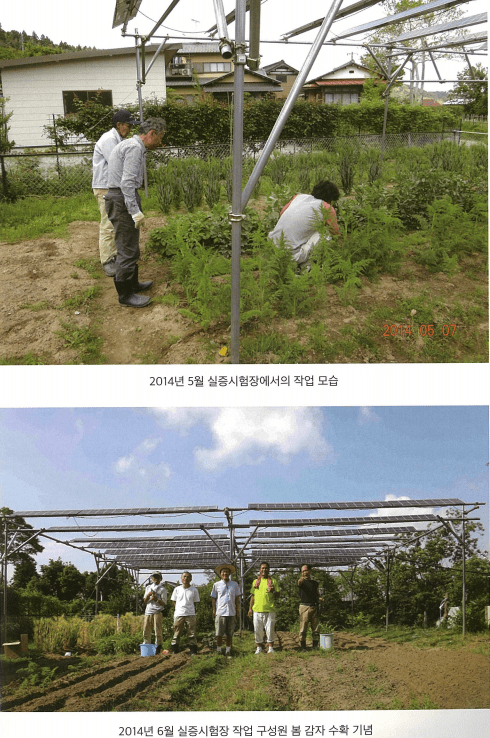 나가시마 아키라는 기본 구상을 마치고 지난 2010년 4월 지바현 이치하라시 미나요시에 최적의 조건을 가진 토지를 발견했다. 400평 부지에 전기와 수도가 이미 설치되어 있는 등 실증실험장을 만들기 적합한 조건이었다. 이어 땅을 고르게 하고 강철재를 구입해 가대 기둥을 놓았다. 그리고 태양광 모듈까지 설치했고, 작물을 재배하면서 태양광 발전을 병행하는 본격 실증 연구 전개했다.