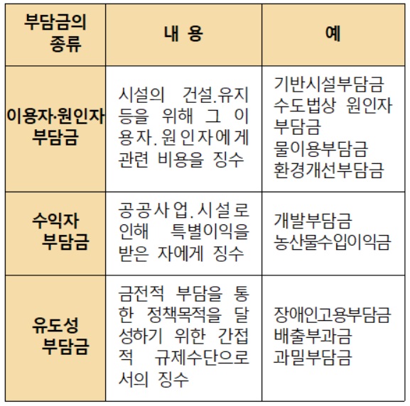 일반적으로 부담금은 이용자·원인자 부담금21), 수익자 부담금22), 유도성 부담금23)