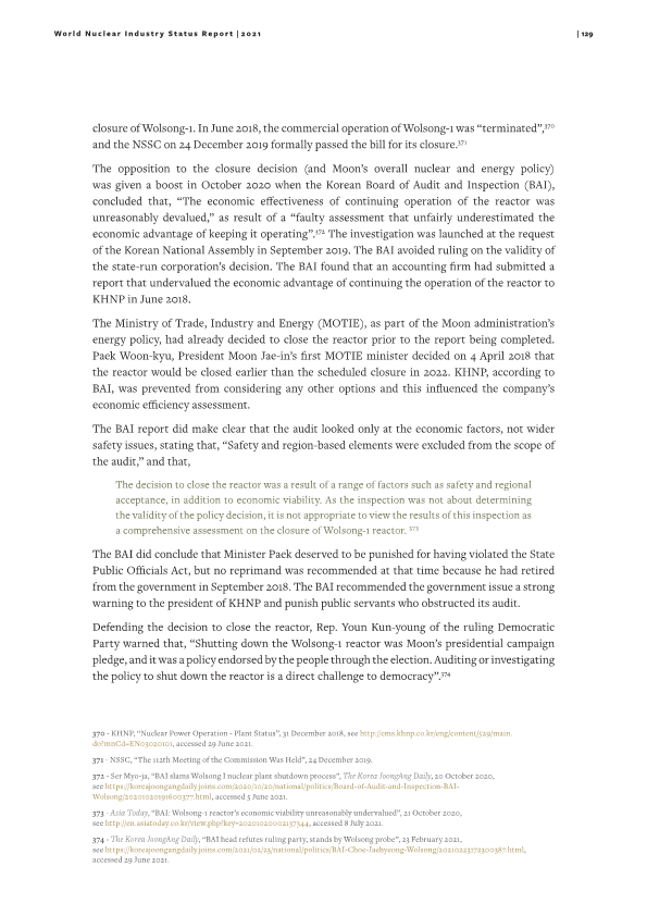The 2021 World Nuclear Industry Status Report + Chapter of [South Korea] By liferoad.org on 10월 23, 2021 • ( 0 ) wnisr2021-hrDownload wnisr2021-hr-south-koreaDownload 이 글 공유하기: 클릭하여 X에서 공유 (새 창에서 열림) X 페이스북에 공유하려면 클릭하세요. (새 창에서 열림) Facebook 좋아하기 가져오는 중...‹ [생명탈핵실크로드] 생명헌장 및 생명탈핵 강연 경과와 유럽 순례일정Bulletin of the Atomic Scientists (US) ›카테고리:11월호-WNISR