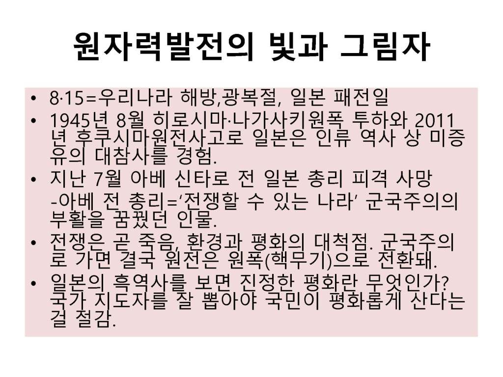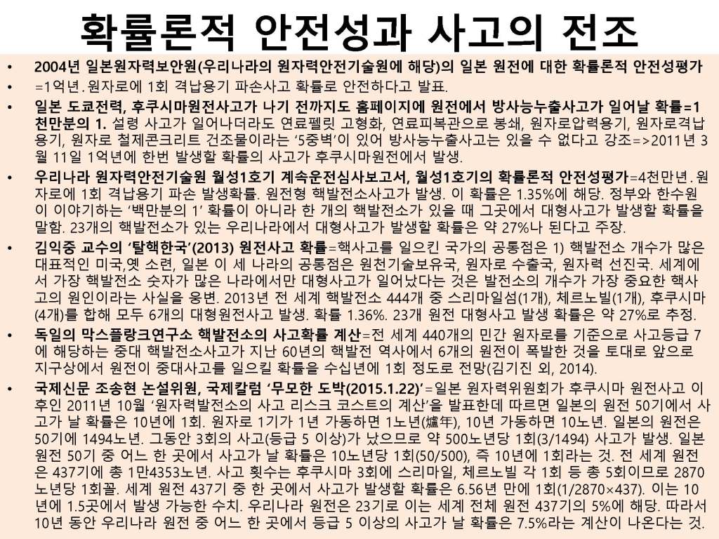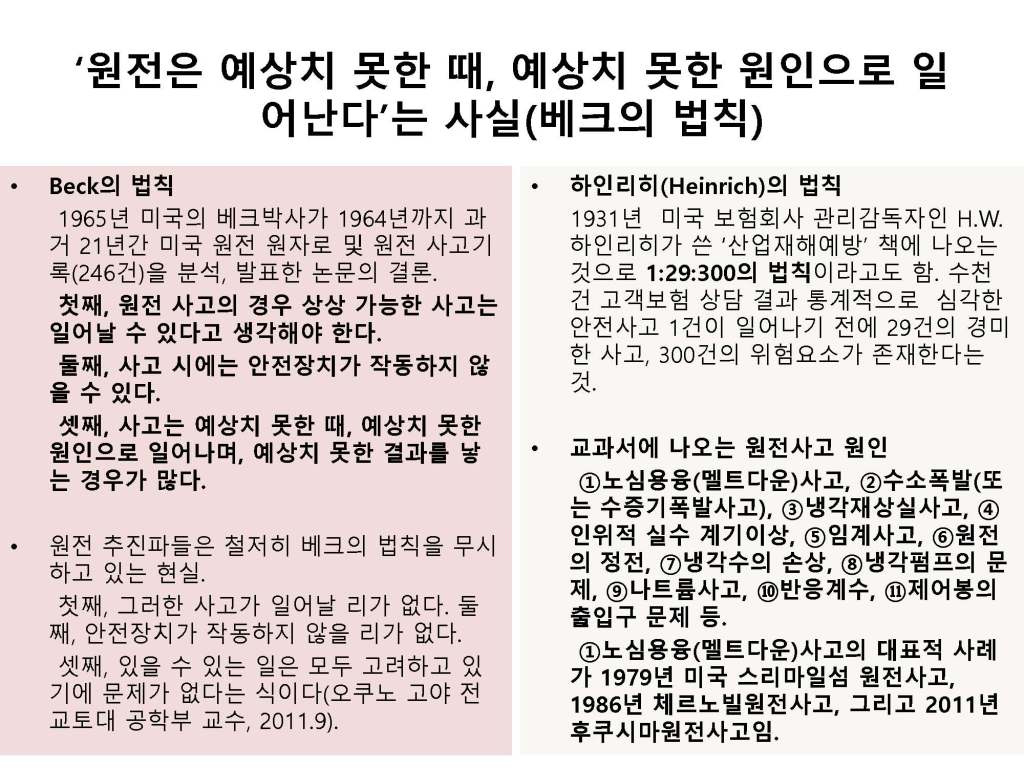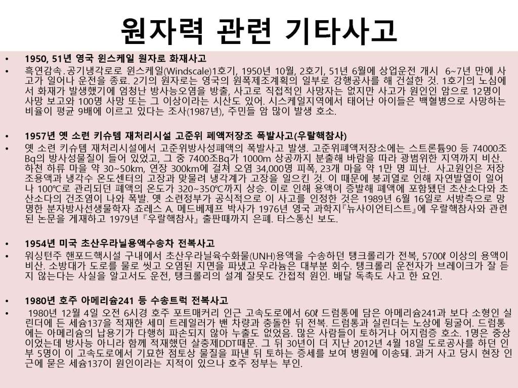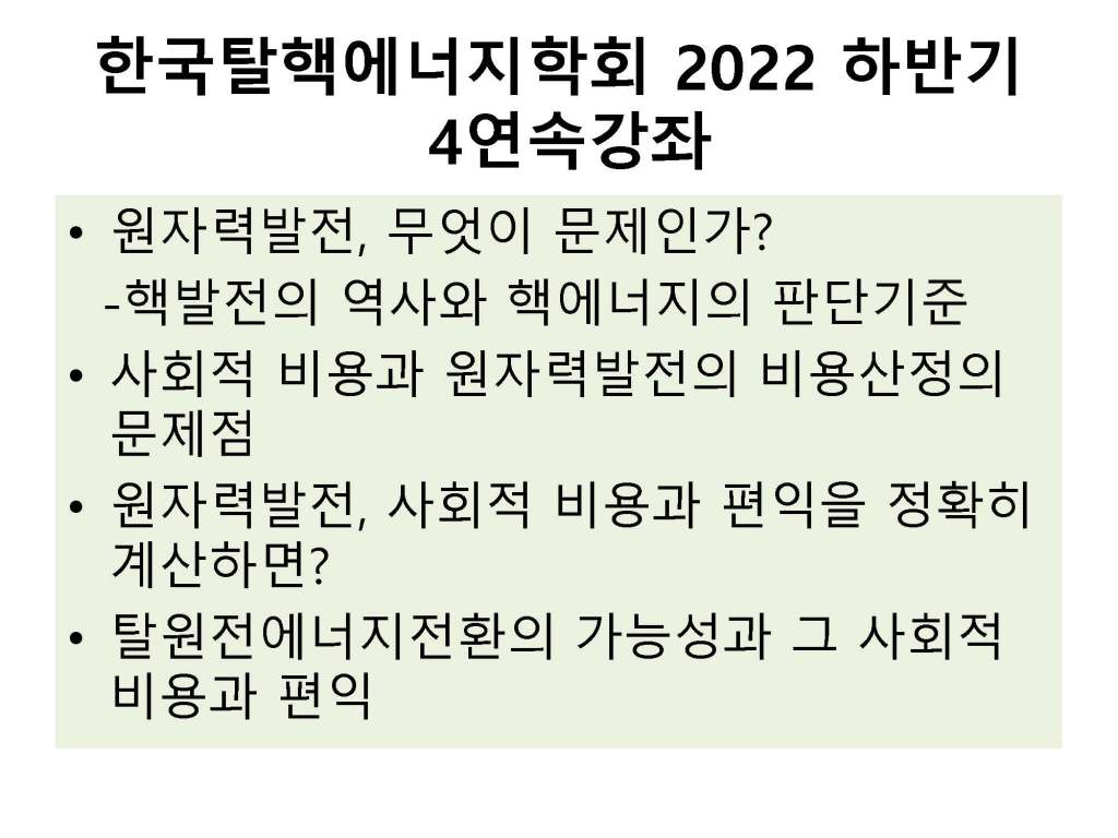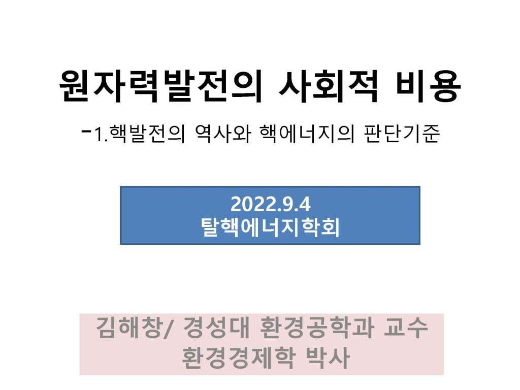 김해창 교수의 연속강의 제1강: 원자력 발전 무엇이 문제인가, 핵발전의 역사와 핵 에너지의 판단기준 강의자료