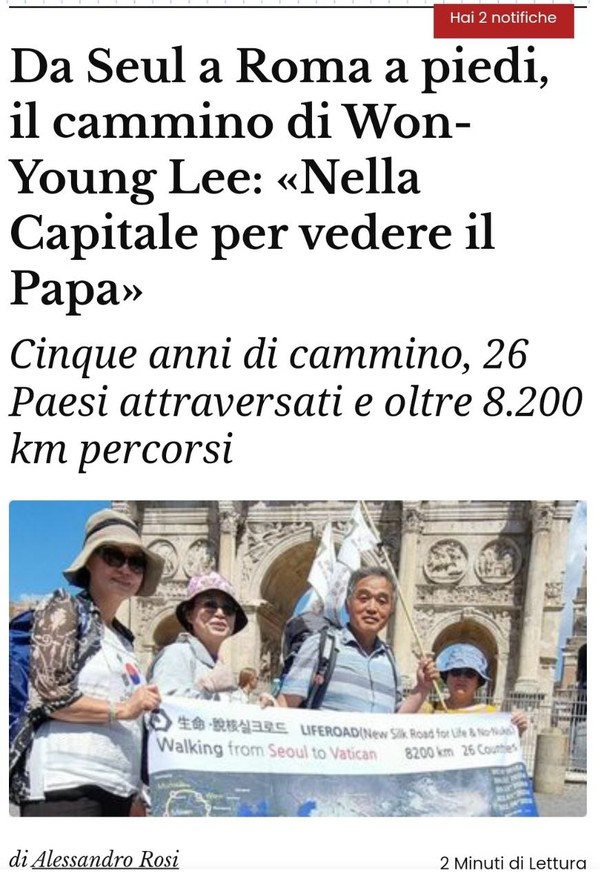로마의 가장 큰 신문인 <일 메사제로>(Il Messaggero)에서 순례단의 도착소식을 크게 실어주었다. 이탈리아 언론에는 일부러 알리지도 않았건만, 그동안 만났던 현지 사람들이 동영상까지 찍어서 제보를 한 결과다. 그분들의 음덕에 감사드린다.