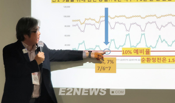 전력피크 때마다 예비력을 확보하기 위해 원전을 증설해야 한다는 주장이 나오고 있다면서 “연간 2~3일 위해 원전을 증설하나. 예비율 감소 때마다 불안감을 조성해 원전 타령을 하는데, 이는 2인 가족이 1년에 한 두 번 오는 손님을 위해 10인용 밥통을 쓰자는 격”이라고 비판했다.