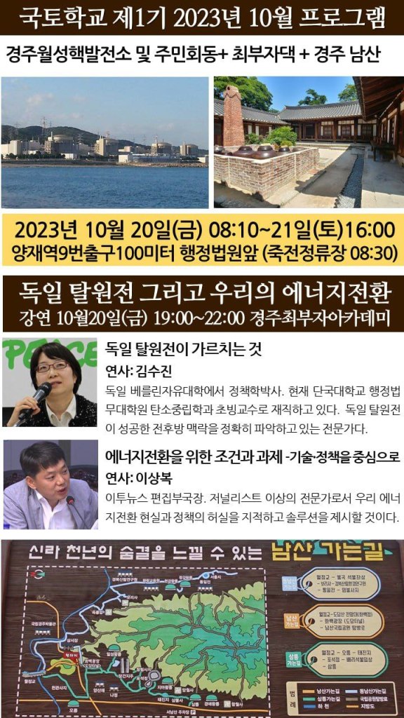 최근 십오년간 국토의 운영과 관련되는 여러 문제들이 등장해서 국가를 위협하고 있습니다. 기후위기를 위시하여 4대강, 원전위험과 에너지, 부동산문제, ‘지속가능한 농업’ 문제 등입니다. 그리고 그 의사결정과 관계되는 문제들입니다.
