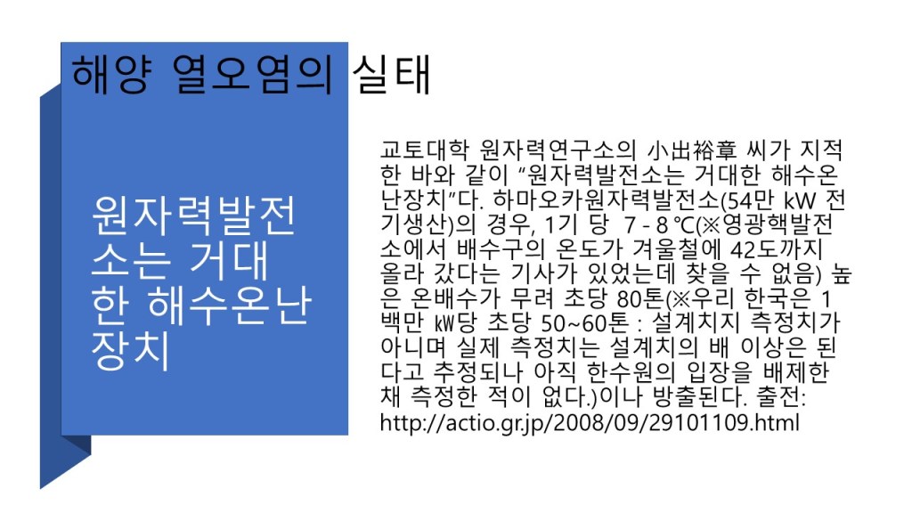 [2023년 추계 세미나] 핵발전소는 지구 온난화의 주범(이병환 영덕반핵투위공동의장) By liferoad.org on 11월 8, 2023 • ( 0 ) 이 글 공유하기: 클릭하여 X에서 공유 (새 창에서 열림) X 페이스북에 공유하려면 클릭하세요. (새 창에서 열림) Facebook 좋아하기 가져오는 중...‹ [세미나 공지] 11월7일, 핵발전소는 지구온난화의 주범[초청강연회] 11월 29일, 미·중·러 핵탄두 증강과 일본의 핵폐수 방출 -한국과 세계의 대응전략은?- ›카테고리:11월, 2023년